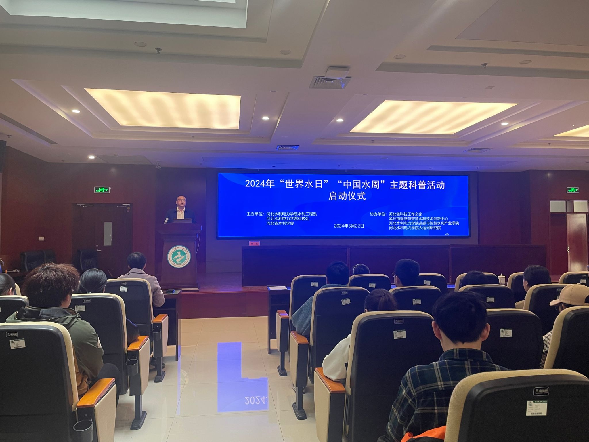 3月25日下午,我校在弘文守正楼9层报告厅举办“沧州市节水型高校”授牌仪式暨节水讲座。副校长杨凯、后勤管理处处长周学增、副处长孟召军及沧州市水务局总工程师吴洪涛、水资源监管与节约用水科科长姜世宇、张巧玲参加会议。会议由后勤管理处处长周学增主持。首先,授牌仪式上,杨凯代表我校上台领取了“沧州市节水型高校”奖牌。此授牌仪式既是沧州市对我校节水工作成果的肯定,也是对未来节水工作的鞭策和期望,标志着我校在节水工作方面迈上了一个新的台阶。...
