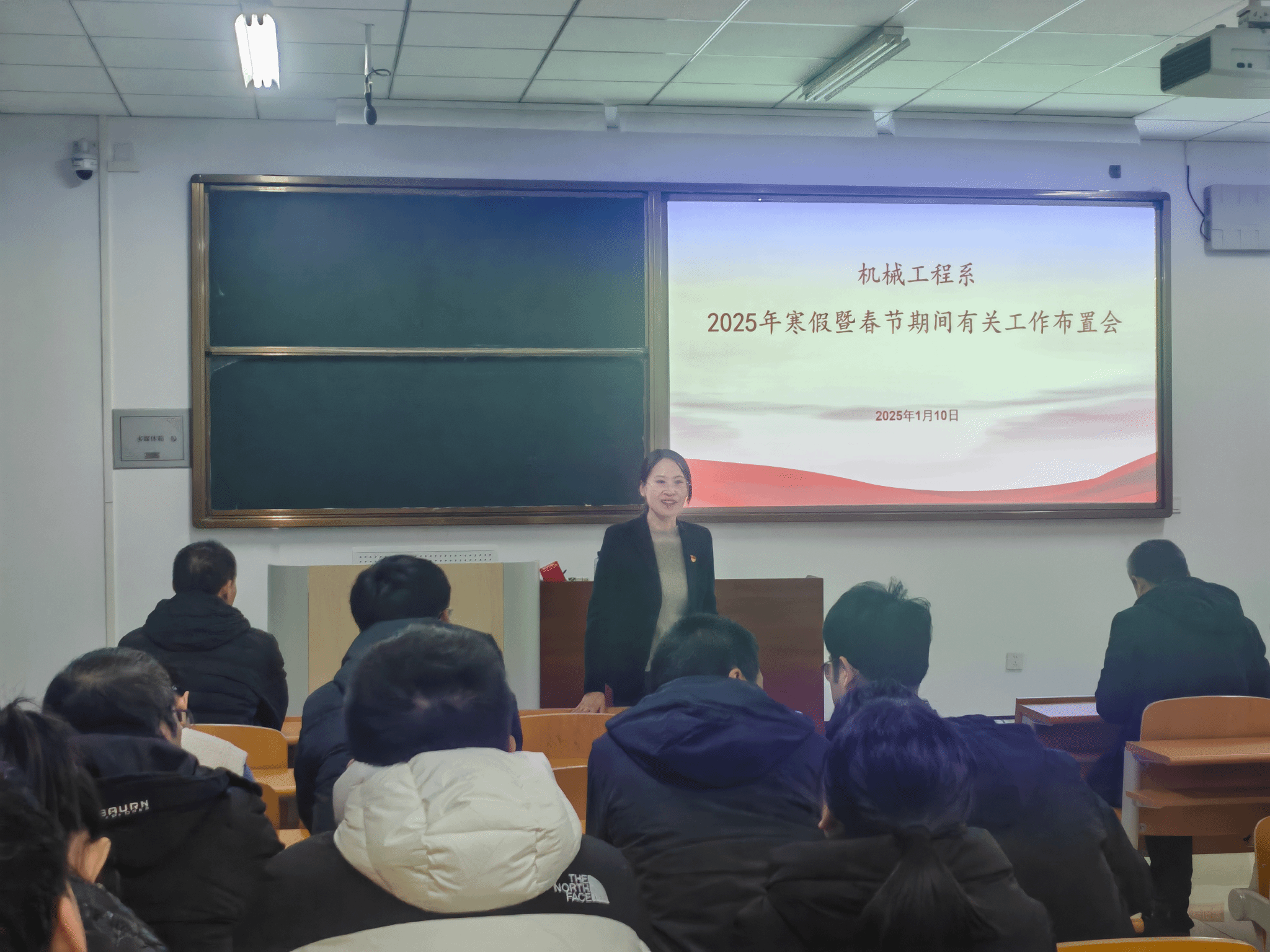1月10日,机械工程系召开2025年寒假暨春节期间有关工作布置会。机械工程系党委书记路维、主任张铁壁及其他领导班子成员、全体教职工参加会议。会上,张铁壁传达了学校2025年寒假暨春节期间有关工作布置会议精神,并就机械工程系期末材料归档、新学期教学材料准备、科研项目申报、课程建设、实验室安全等方面工作进行部署安排。路维在充分肯定机械工程系2024年工作成绩的同时,就做好寒假工作及推进机械工程系高质量发展工作提出五点要求:...