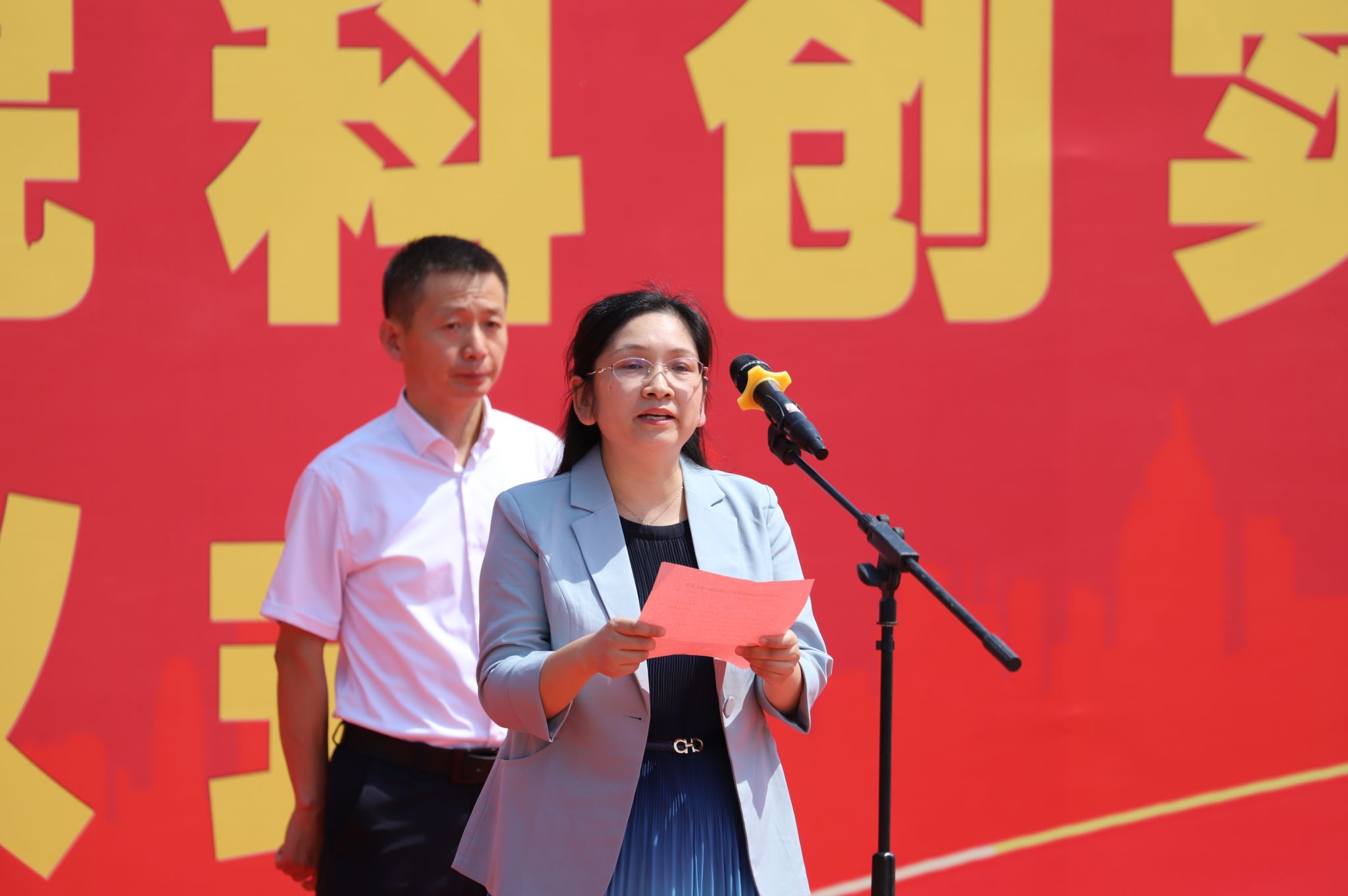 仲夏时节,喜讯频传。6月28日上午10时,我校举行科创实训中心竣工交付仪式。学校领导班子全体成员,中咨工程有限公司副总经理杨慧丽,中铁建设华北公司项目部负责人李晓帅,沧州市生态环境局运河区分局局长潘学健出席。仪式由副校长于振海主持。