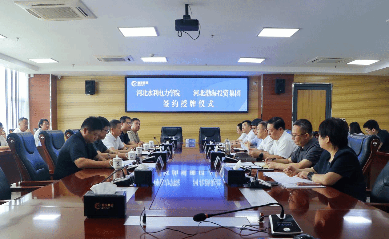7月30日上午,我校与河北渤海投资集团在渤海新区金融广场七楼会议中心举行校企合作签约仪式。双方共同签订校外实践教学基地、就业基地并进行揭牌仪式,河北渤海投资集团党委书记、董事长杨正宇,党委副书记、总经理孙从起,学校党委副书记、校长王滨,副校长杨凯参加此次签约仪式。
