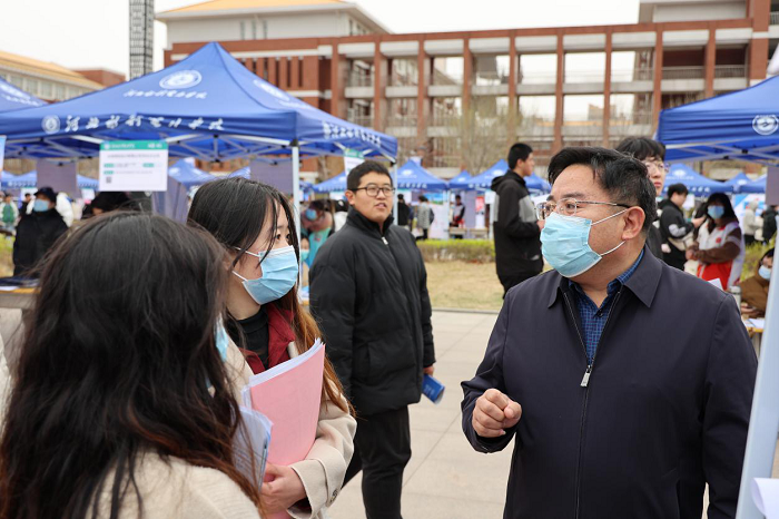 学院党委书记陈进杰、校长张效松、副校长王建明在学院相关部门负责同志的陪同下,来到现场与毕业生交流沟通,了解毕业生求职情况、就业期望,鼓励同学们既志存高远又实事求是;既手留书香,又脚沾泥土,树立正确的就业择业观;在与单位的交流中,对单位来校招聘表示热烈欢迎,了解单位的用人需求及企业发展态势,深入介绍学院近年来取得的进步和人才培养情况,邀请用人单位在招聘的基础上进一步深化校企合作;对各系领导、专业带头人、辅导员作出指示,要求做好毕业生组织动员,积极推荐毕业生,充分利用双选会平台,加强就业育人实践教育,访企拓岗,积极开展校企合作。