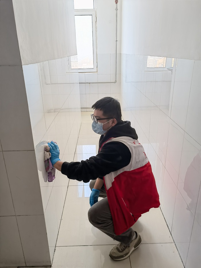 本次劳动教育实践活动对5号公寓的楼道和墙裙进行了专项卫生清理,同学们积极、热情的劳动状态纷纷感染着公寓楼里的每一位同学。活动过程中,后勤管理处副处长孟召军做动员讲话,他指出,希望同学们在劳动中可以获得充实和快乐,通过劳动体会到服务人员的艰辛,并在劳动中有所感、有所得、有所悟,进一步将这种良好的风气在校园里传播和发扬下去。土木工程系团委书记韩艳丽提出,作为入党积极分子,要在同学中起到模范带头作用,用实际行动践行党的宗旨。公寓管理中心主任程树明提到,希望同学们崇尚劳动,尊重劳动,共同建设清洁公寓、美丽校园,为沧州市文明城市创建和美丽校园建设做出贡献。