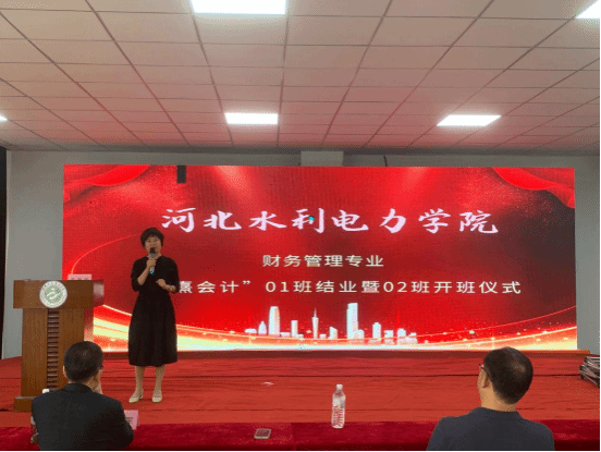 在经贸系领导及企业领导的高度重视和关心下,在企业教师与学校老师的共同努力下,为期4周的财务管理专业“翰熹会计”01班圆满的完成了各项实训实操任务。本期实训内容多、要求高、针对性强,开拓学生的眼界、培养了学生的会计实操能力,收到了良好的效果。为了及时总结经验,引导同学们进一步明确学习目的和努力方向,9月25日上午8点,经贸系在启智楼4B402举办财务管理专业“翰熹会计”01班结业、02班开班仪式。出席此次开班仪式的人员有:经贸系书记苗立峰书记,经贸系主任张桂芳主任,北京安平融信财税管理集团有限公司杨树军董事长,沧州翰熹会计服务有限公司创始人王春平总经理,财管教研室副主任李果老师,代账工厂厂长孙亚利老师,课程培训教师薛凯璐老师,以及财务管理教研室的各位老师和财务管理专业2020级0102班的全体学生。会议由王海棠老师主持。