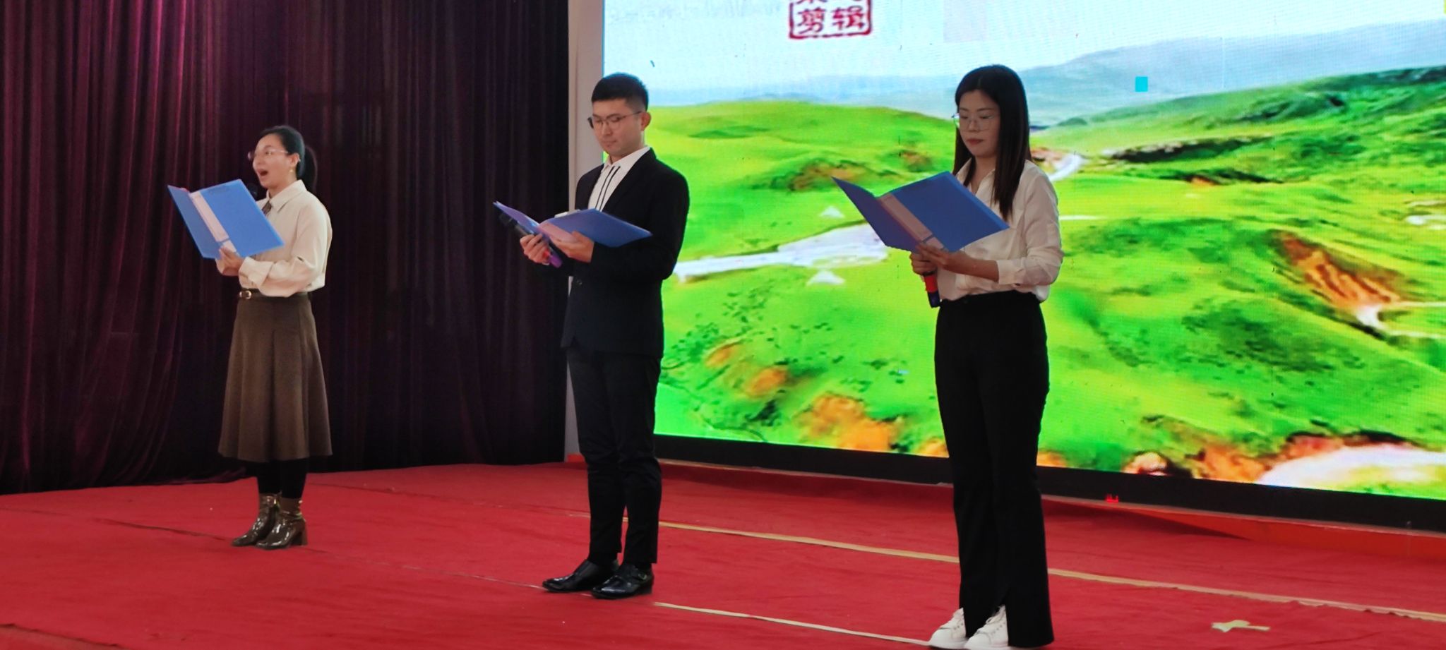 活动在慷慨激昂、催人奋进的诵读声中拉开帷幕。马克思主义学院教师代表首先朗诵了《永远跟党走》、《青春》、《中华颂》、《祖国,你就是我要唱的那首歌》,抒发了思政课教师对党、对祖国、对社会主义的热爱,以及在立德树人的过程中尽显踔厉奋发的勇气和坚毅。而后,来自全校11支参赛队伍依次登台朗诵,同学们用嘹亮的声音歌颂党、歌颂祖国、歌颂中华民族。一支支队伍声情并茂,一个个红色经典激荡人心。《大写的中国》《月光下的中国》《大漠敦煌》《读中国》《可爱的中国》带我们见证了中华上下五千年的浩瀚历史、灿烂文化、壮丽风景;《中国青年》《觉醒青春》《中华少年》让我们看到了青年兴则国家兴,青年强则国家强的责任担当;《百年恰是风华正茂》《英雄》《百年芳华》深情演绎了青年风华正茂,生逢其时,自当延续红色血脉,矢志为国的精神面貌。