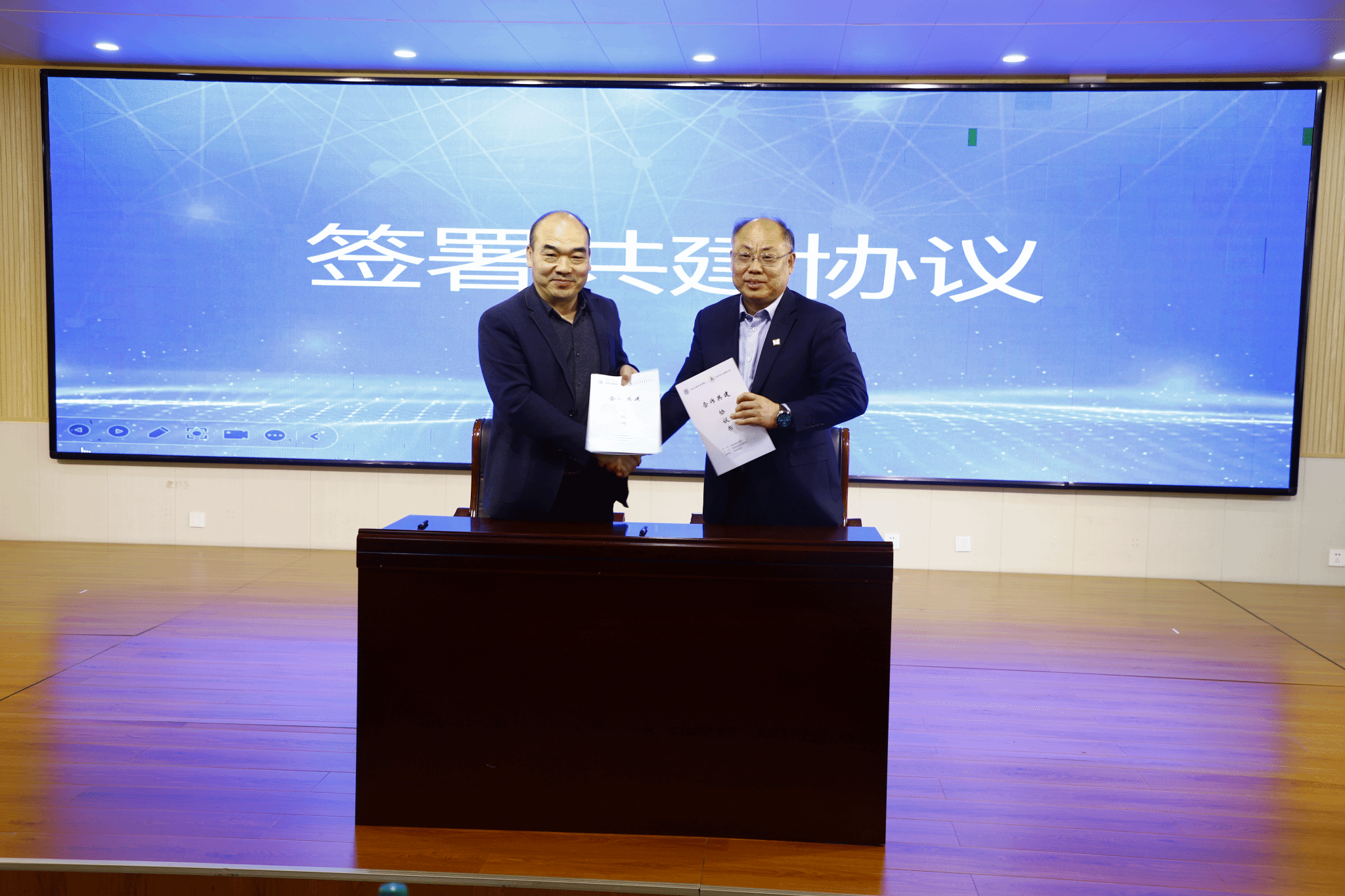在签约仪式上,董志良与沧州市教育局副局长刘涛共同为“产学研基地”与“科技研学基地”揭牌,我校电气自动化系主任唐勇与上海路小学党支部书记、校长呼卫东共同签署了合作协议。此次签约仪式,标志着双方正式开启了深度合作的新篇章,不仅为两校之间的资源共享和协同发展奠定了坚实基础,有效促进了科学研究与教育实践的结合,为青少年提供了更多实践机会和创新平台,更为未来的科技创新教育合作开辟了广阔空间,进一步推动了科技创新教育的发展。